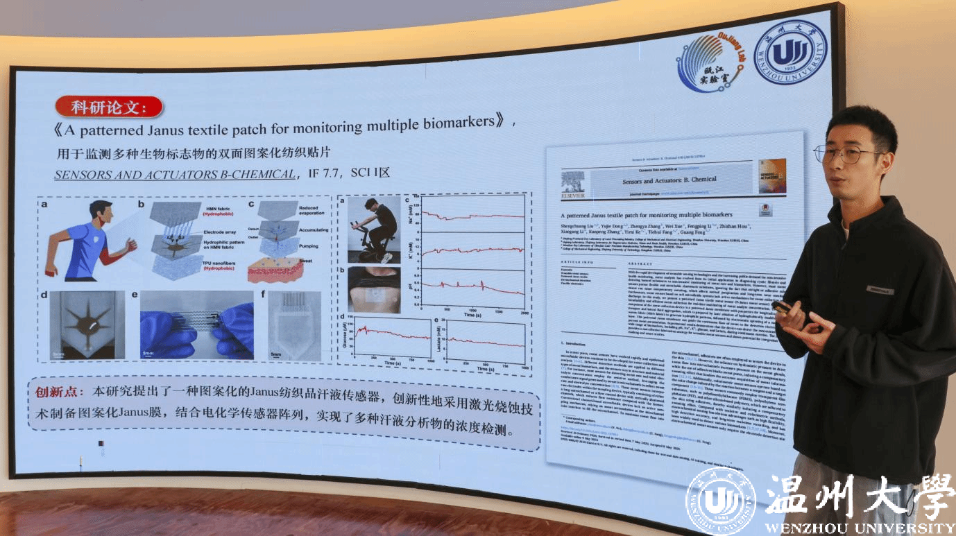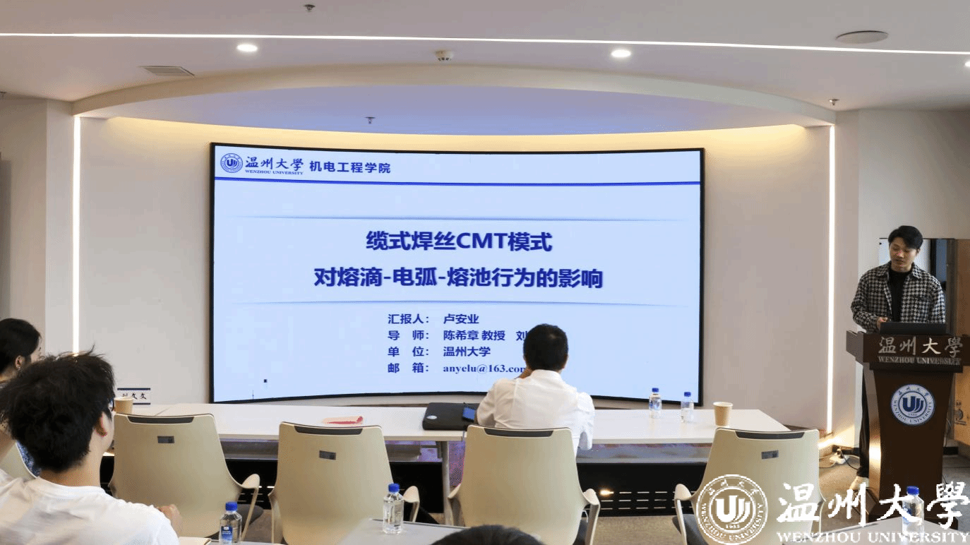 在研讨环节,互动氛围更显热烈,参会师生围绕数学建模、焊接工艺参数等具体问题深入讨论,在海报区交流科研心得。最后三场报告陈东来同学的《激光丝粉协同增材制造tc4-cu功能梯度合金组织与性能研究》,探索了功能梯度合金的制备与性能调控;李永杰同学《基于纳米颗粒强化的高强铝合金激光焊接熔池动态行为的数值模拟研究》,通过数值模拟技术揭示了焊接过程的微观机制;马超林同学的《基于激光诱导石墨烯具有各向异性特性的纤维式柔性应变传感器用于便携式可穿戴设备》,则展现了柔性电子材料在可穿戴设备中的应用潜力。三场报告各有侧重,共同勾勒出学院在相关领域的科研活力。