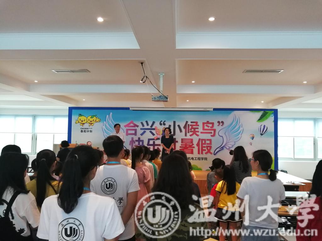 温州大学“小候鸟”暑期实践队与合兴集团合作,秉承着寓教于乐的理念,为集团的“小候鸟”们暑期生活注入新思想、新活动力,为增进了外来务工人员与子女的感情交流提供了机会,为他们创造了美好难忘的的暑假时光。“候鸟”家庭也在这样的活动中感受到了城市中的温暖情意。