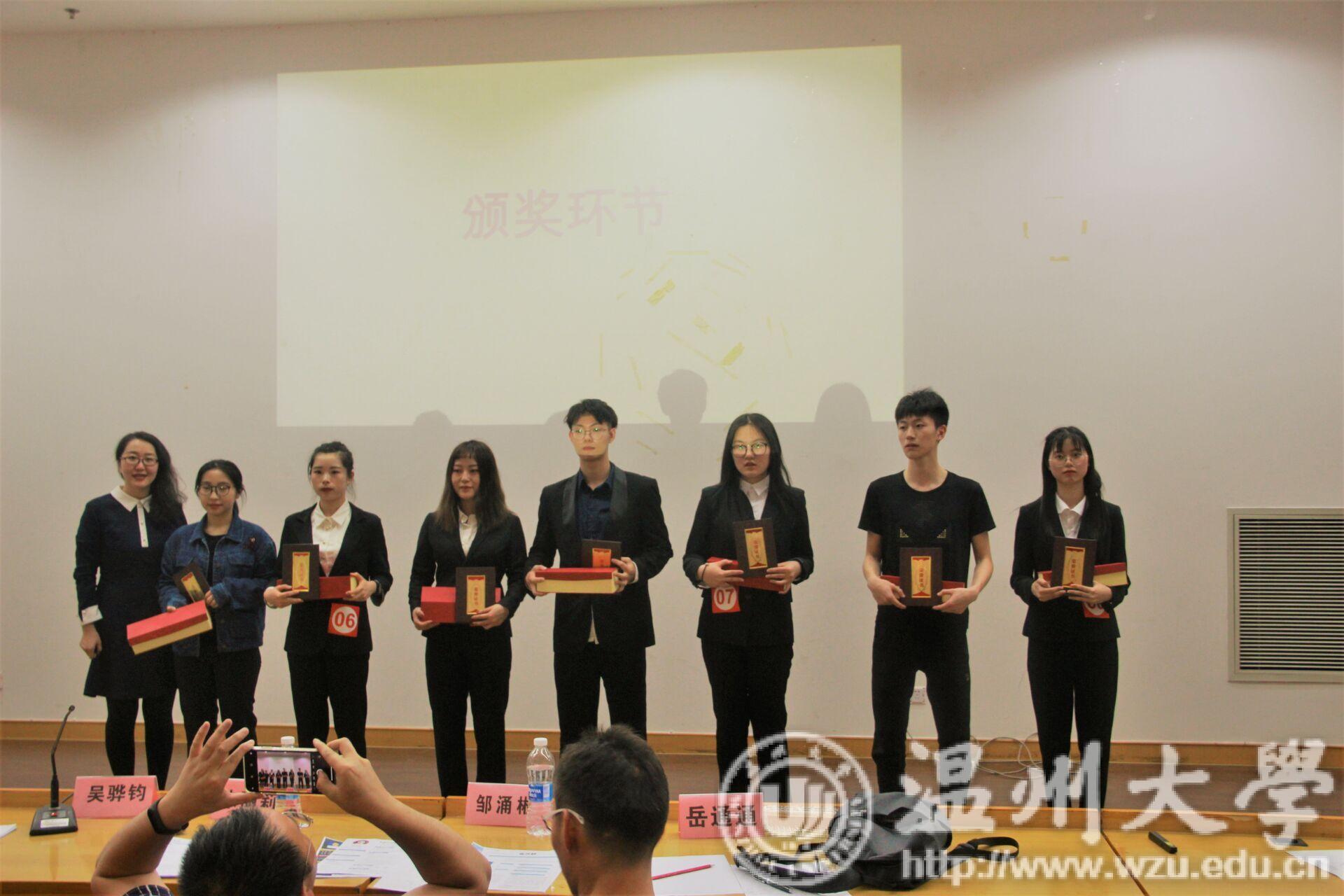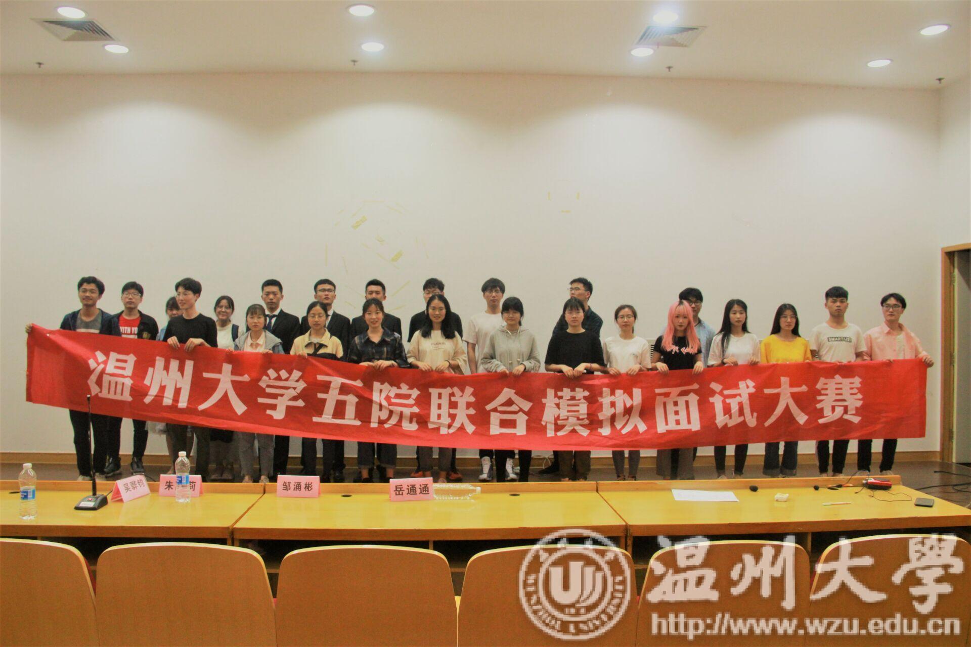 为了增强广大学生就业意识,提高就业积极性,以及培养他们的岗位竞争能力。温州大学机电工程学院、商学院、数理与电子信息工程学院、建筑工程学院、化学与材料工程学院共同举办了五院联合模拟面试大赛。从4月12日简历设计初赛海选到无领导小组面试复赛,为期两周的五院联合模拟面试大赛终于迎来了决赛。2019年4月26日18:30分五院就业服务部在南校步青厅举办了这场最终大赛。来自华润置地温州公司人事部的程高经理先生、杭州肯德基有限公司温州时代店经理吴骅钧先生、温州大学就业处朱丽莉老师、化材学院辅导员邹涌彬、数电学院辅导员岳通通,以及各学院学生代表近200人。