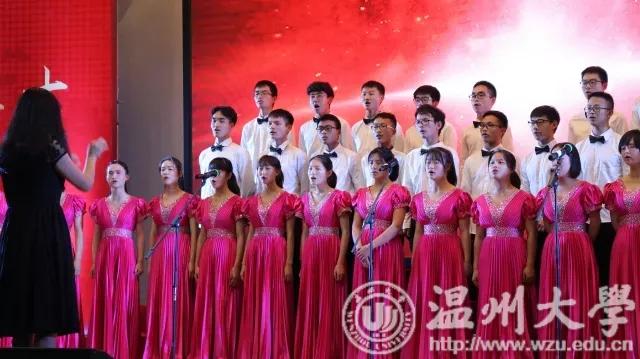 机电工程学院合唱队演唱《爱我中华》 机电工程学院党总支书记周荣致辞